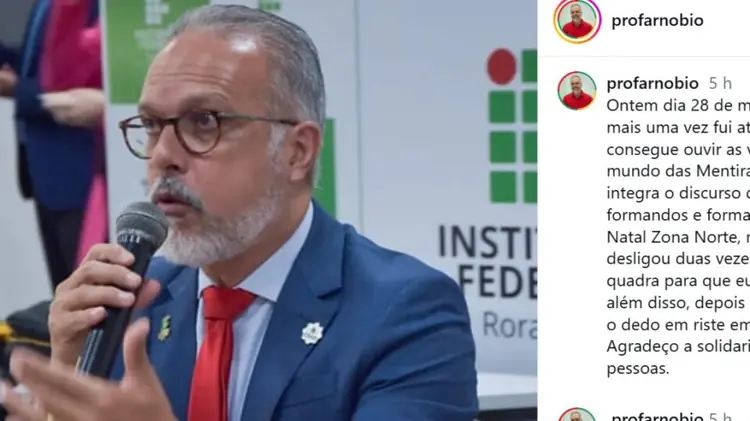 O reitor do IFRN, José Arnóbio de Araújo Filho, destacou políticas públicas associadas à gestão de Lula e acabou vaiado.